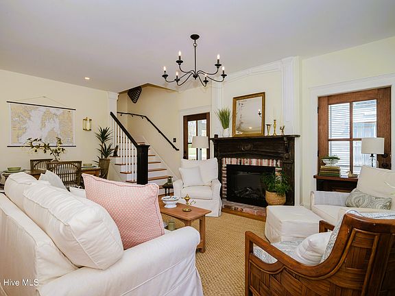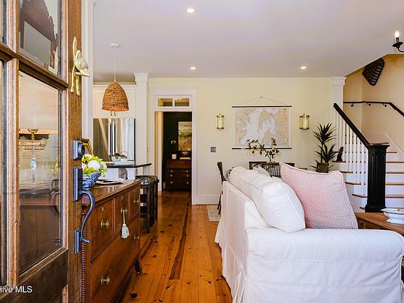This handsome home - a perfect blend of craftsman & bungalow styles - was built by Down East Preservation in 2022. The open floor plan features a gracious wrap around porch, mahogany doors, 10' ceilings, soapstone counters, an antique mantel, and wood floors throughout. The primary suite is on the 1st floor, with 2 large bedrooms & a bath upstairs. A portion of the porch has been screened in, providing additional living space. A large backyard is fenced in with a storage shed for bicycles and lawn equipment. Careful consideration to details - both inside and out - ensures a seamless fit in the downtown historic Edenton neighborhood. Locals often comment they remember who lived here ''pre-restoration,'' confirmation that Down East succeeded in building a NEW home that looks as if it's always been there! A ''new'' home in historic Downtown Edenton is a UNICORN rare opportunity!