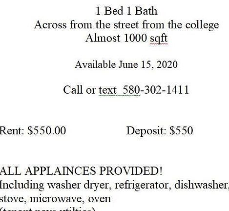 This 900 square foot apartment home has 1 bedrooms and 1.0 bathrooms. This home is located at 302 W College Ave, Weatherford, OK 73096.