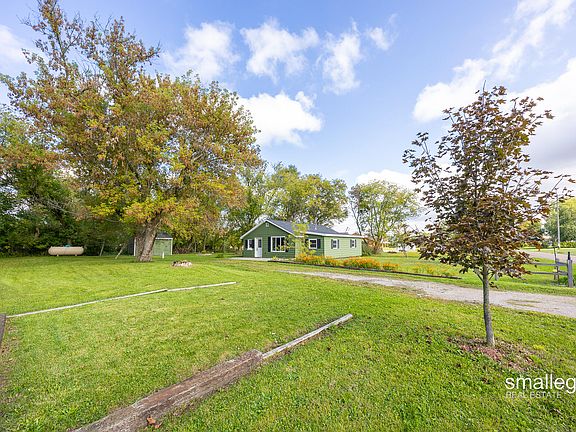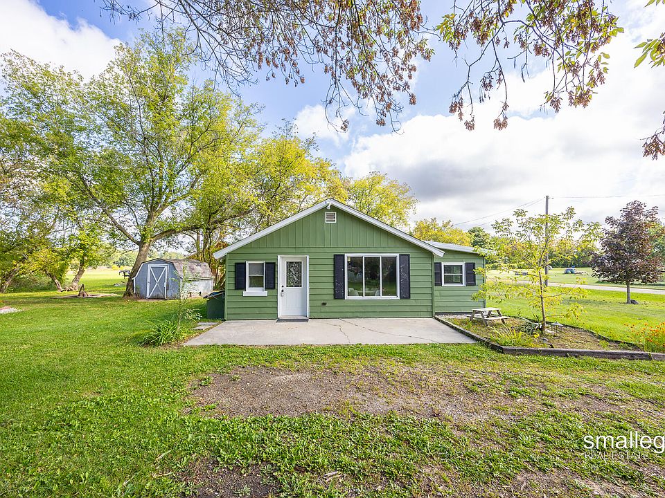 Seller is offering 3% in concessions. Charming 3-bedroom, 1-bath ranch just 5 minutes from Sand Lake, set on a spacious lot with mature trees and a storage shed. Inside, enjoy an open layout with updated flooring, a bright living area, and large windows for natural light. The kitchen features ample cabinetry, tile backsplash, and included appliances—fridge, range, microwave, washer, and dryer. Main-floor laundry offers custom cabinetry and a wood countertop, while the updated full bath provides fresh finishes and storage. Major updates include roof and well (2020) and water heater (2018), giving peace of mind. Outside, relax or entertain on the patio with plenty of yard space to enjoy. Convenient location close to town yet private and quiet. All offers reviewed on 9/30 at 4pm.