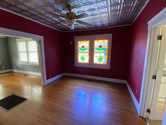 Historic Park Hill. Stain glass windows in dining room, kitchen, living room, laundry room and office. Hardwood floors. Charming kitchen with appliances from the 1950's. Dinning room has tin ceiling. Large classic tile bathroom with glass block window. 2 car garage with car cover. Provides storage and covered parking for 3 cars. Deck in back yard. Must see to appreciate. Renter must provide references and pass credit check (Credit does not have to be perfect, but I do need to see that any problems are in the past). No Dogs