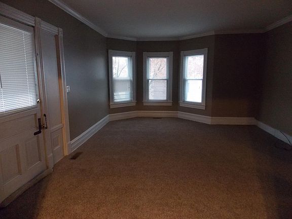 This captivating first floor apartment is now available! The apartment features new carpet throughout and spacious rooms all for a fantastic price! One Bedroom area is perfect for an office but could be made into a bedroom if needed. Off street parking in the back. No pets please! Water, Sewer and trash is included in the rent.