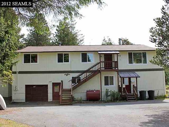 There is plenty of potential in this spacious multi-family home. You'll find a one bedroom, one bath apartment on the ground level with its own private entrance. The main entrance of the home is up the stairs. A fire place anchors the bright living space. A private balcony deck looks out of the spacious lot. The circular driveway has two separate entries and extra space for parking. Enjoy the landscaped front yard as well as the flower gardens spotted throughout the property.