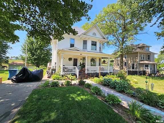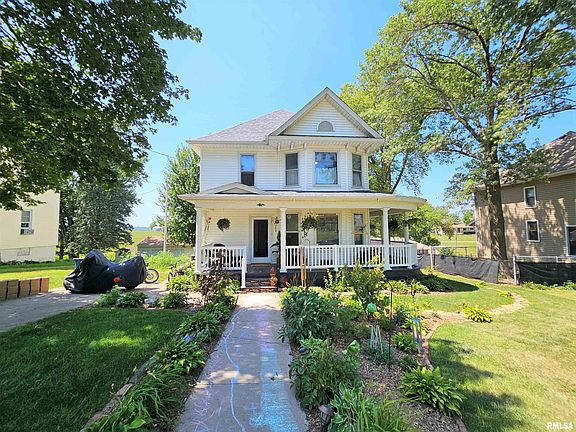 Welcome to this beautiful 2-story home in a small town!! Enter into the large foyer with natural woodwork, original hardwood floors and charm throughout. Enjoy days/nights out front on the wrap around porch or out back on the large deck overlooking the spacious back yard. Large kitchen with plenty of cabinet space and pantry. Per seller updates include a new furnace in 2022, kitchen/appliances in 2021 and new light fixtures in bedrooms, kitchen, foyer, and main floor bathroom. 4th bedroom could be used for a den/office and believed to once be a 3rd bathroom in the house. Plenty of storage in walk-up attic or full basement. Schedule your showing today!
