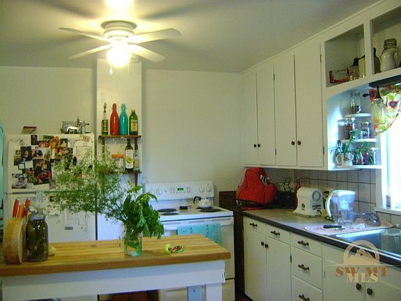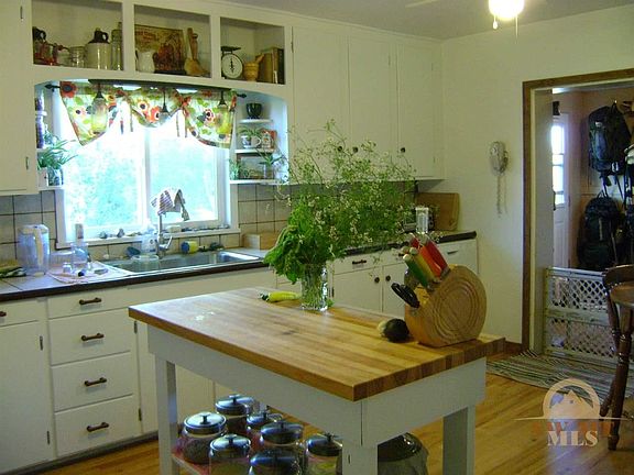 Great buy on this little bungalow. Huge lot over a half acre with a seasonal irrigation ditch running through. Hardwood flooring in living room, kitchen and bedrooms. Large kitchen with dining area. Mudroom and laundry off the kitchen is big enough for freezer and outdoor gear. Also has a large greenhouse and detached single car garage. Extra storage building for lawn equipment. Kitchen has lots of counter space. Entire yard has been perimeter fenced. Well established trees and shrubs.
