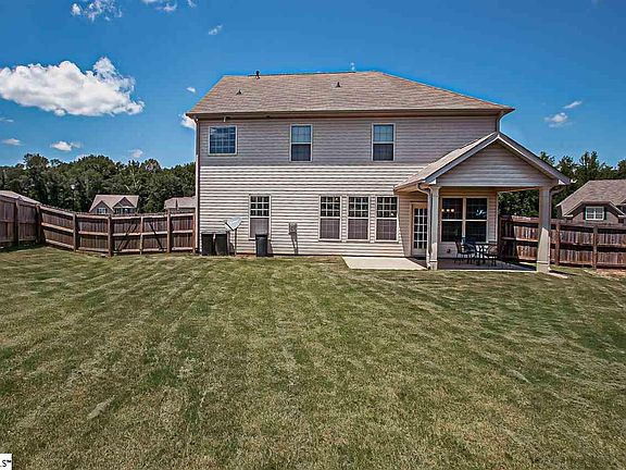 Better than new, this 3 year old home is beautiful maintained and ready for its new owners. Located in Meadow Ridge subdivision, this home is central to Easley and Powderville and convenient to I-85. Fully fenced back yard with a beautiful covered porch with adjacent patio to enjoy the beautiful South Carolina weather. Inside you will be wowed by the 2 story foyer. To the left is a formal dining room that could also be used as an office, etc. Continue into the kitchen and living area. Fall in love with the modern finishes including granite counter tops, white cabinets and a subway tile backsplash. You will enjoy preparing your meals with the stainless steel appliances. There is a spacious bedroom on the main level with new carpet. There is also a full bathroom on the main level that has been upgraded with a Bath Fitters accessible shower. This bedroom and bathroom combination is perfect for an in-law suite for if disability access is needed. Upstairs you will find a generous master suite. Large bedroom with tray ceilings, bathroom with double vanities, separate shower and garden tub, as well as a large walk in closet. 2 additional bedroom and another large bathroom located on the 2nd level as well as a bonus room. The bonus room could easily double as a bedroom since it already has a closet, making this home serve the need of 5 bedrooms easily. The laundry room is also upstairs and the washer and dryer will convey to the buyer. This is a lot of home for the price- don't wait to schedule your showing!