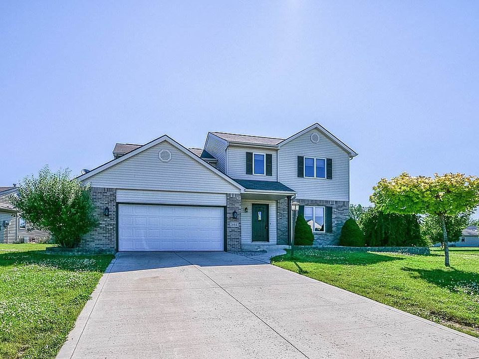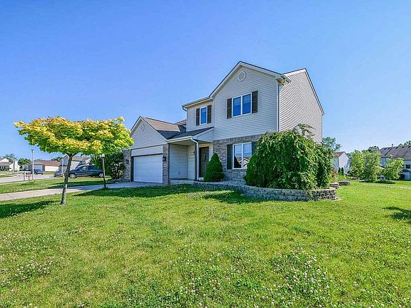 This property has a great location with easy access to shopping, I-69, schools, and walking trail! Large 2 story, 5 bedroom, 2.5 bath house with oversize 2 car garage on a corner lot provides lots of room for family and guests. The main level provides a family room with fireplace, dining area open to kitchen, bed/flex room, and half bath. Four bedrooms upstairs with 2 full baths creates a lot of space for everyone! Full finished basement with wall to wall carpet. New roof, new siding, New AC compressor, recently painted. Underground fence for your dogs stays. All new kitchen appliances stay. Washer and dryer stay.