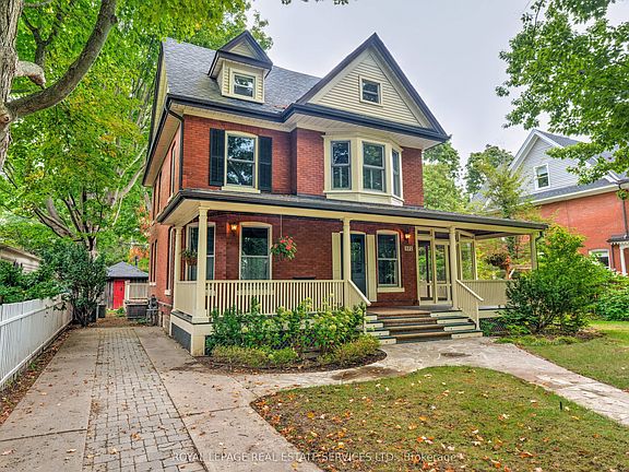 Welcome to 302 William Street, a distinguished Heritage home in the heart of Old Oakville. This timeless red-brick residence exudes character and charm, set amidst beautifully landscaped gardens and mature trees. Meticulously maintained and thoughtfully updated; the home offers more than 3000 sqft of inviting living space. A welcoming covered veranda and screened-in porch set the tone for the warmth and hospitality found inside. The gracious foyer opens to the principal rooms with hardwood floors that flow throughout the main level. You'll find a formal living room with gas fireplace, an elegant dining room and a sun-filled kitchen and breakfast area with walkouts to the backyard deck as well as the screened-in sunroom - the perfect spot to linger over dinner while entertaining friends & family. Upstairs, the primary bedroom offers a walk-in closet, semi-ensuite and a charming hidden sewing nook adds a sense of character and discovery. Two more bedrooms and a main 4pc bath complete the second level. The third floor provides a full retreat for family living, featuring a generous family room, two more bedrooms and a four-piece bath - ideal for guests or growing families. The lower level includes a large laundry area, a workshop for hobbies and projects and plenty of storage space. Outside, the lush, fully fenced backyard is a summer oasis with an in-ground pool, cabana change room, and ample deck and patio space designed for entertaining. Perfectly located, this home is a short walk to Oakville's vibrant downtown, renowned restaurants, boutique shopping, Lake Ontario's waterfront trails, and the Oakville Club. With excellent schools nearby and easy access to highways and the GO Station, 302 William Street is more than a house, it is a rare opportunity to own a piece of Oakville's history.