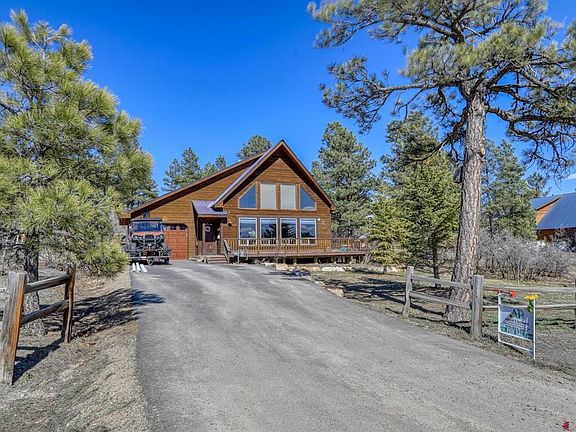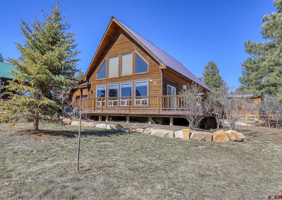 Check out this beautiful cedar sided Colorado mountain home with views on a quiet street in Twin Creek Village. This home is situated on a nicely wooded lot with enough trees for shade but not so dense as to lose the passive solar that this home offers. This three bedroom, two bathroom home with tall vaulted ceilings has plenty of room for your family. In the large open concept living and kitchen area there are many windows to view the beautiful vistas and sunsets while sitting by the fireplace. The inside of the home was nicely updated in 2022 with Quartz counter tops, new wood cabinets and stainless steel appliances. Outside includes paved driveway, a deck, patio area with a fire pit, fenced garden area and even a playhouse! Easily accessible all year round within walking distance of National Forest trails. Close to all the amenities that are offered in Pagosa Springs, including restaurants, shopping, hot springs, not to mention skiing at the Wolf Creek Ski Resort. Come and join this amazing mountain community.