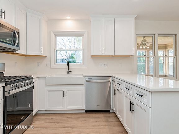 This newly remodeled and refreshed ranch home is located in the highly sought-after Yorkville neighborhood, offering a spacious corner lot. The home features 3 bedrooms and 2 bathrooms, with a large, updated kitchen showcasing brand-new white cabinetry, quartz countertops, and stainless steel appliances. The kitchen also includes a pantry and table space, all overlooking the enclosed porch and seamlessly connecting to the vaulted family room, which features a cozy fireplace and abundant natural light from large windows. Upon entering, the formal living room provides an option to be used as a dining area, adding to the home's versatile flow. Stylish updates are present throughout, making the space feel modern and inviting. A standout feature is the enclosed 3-season porch at the back, which leads to a patio and spacious yard. Full basement with R/I plumbing for 3rd bath. The outdoor area also includes a shed, a dog run, and an attached 2-car garage. The home has great curb appeal and is ideally located near all the amenities that Yorkville has to offer. This neighborhood, once home to the "old swim club," is now surrounded by newly built homes, further enhancing the area's appeal.
