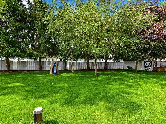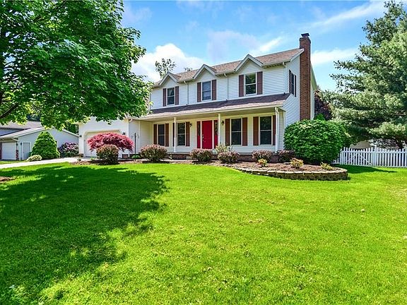 Look no further!! Welcome home to 302 Wyandotte Trail SW in desirable Hartville! Upon arrival you'll notice the inviting front porch. This well-maintained, 3 bedroom, 2.5 bath, 2-story Colonial has many upgrades throughout the home. 1st floor offers a large family room with brick gas fireplace and crown molding. The on trend white kitchen boasts Corian countertops, plentiful cabinetry, and a sliding glass door out to the deck. Bamboo wood flooring throughout the eat-in kitchen, dining room (or optional living room), as well as the foyer and half bath. Laundry is located on 1st floor. Large master suite with cathedral ceiling. Spacious master bath with heated ceramic tile, skylight, double sink vanity, large walk-in shower (complete with extra rain shower head), and walk-in closet! Second bedroom is also very spacious with walk-in closet. A finished lower level rec-room could be used for entertaining, a kids playroom, or possible theater room. Completely fenced-in backyard includes storage shed. The 2.5 car garage has plenty of storage space with upper cabinetry as well. High efficiency furnace and whole house humidifier installed in 2013. New hot water heater & water softener in 2018. Nothing to do but to move in and enjoy!