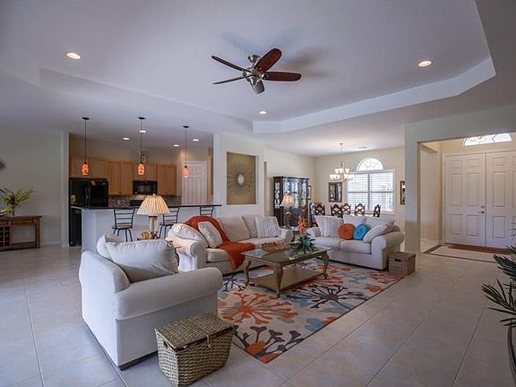 Why wait to build, when you can move right into this stunning, virtually new home that was just completed in 2014? High, soaring tray ceilings in this Great Room plan allow for plenty of light to bounce off the walls of this Santa Maria floor plan. Boasting 3 large bedrooms in this split plan as well as an oversized 203 sqft Bonus Room with an attached private bath and sliding doors to your pool, this home offers plenty of room to spread out. Enjoy cool dips in your swimming pool with peaceful fountain as you gaze out over the lake and preserve just behind your home. Cooking is a joy in your custom kitchen with granite counters with beautiful gold flakes that reflect light so stunning and subtly, and tall solid wood cabinets in a space open to the Great Room so you can be a part of all the fun. The sliding doors from the Great Room recess all the way past the wall so you can enjoy the beautiful indoor-outdoor flow all year long. The curb appeal is phenomenal with a large circular drive and 3 garage spaces, upgraded barrel tile roof and double door entry on this large home site that is over half an acre large! More upgrades include Hunter Douglas shades, plantation shutters, wood inlay detail at entrance and upgraded tile floors. Twin Rivers boasts miles of nature trails, boat and kayak launch, parks, playgrounds & only minutes from shopping and great schools! Call and schedule your private showing today.