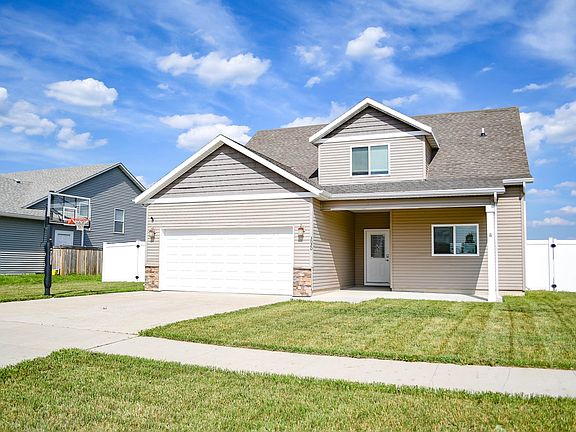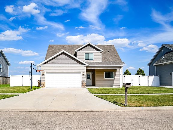 Wow is what you will say when you enter this immaculate, move-in ready home! This home has 3 bedrooms, 2.5 baths, and a 2 car attached garage.  You will fall in love with covered front porch and the open floor plan of this home.  The entryway of the home leads to a large living room with natural lighting and sliding glass doors.  The kitchen has lots of cabinet space including a pantry cabinets, stainless steel appliances, and a  peninsula with room for barstools. There is a dining space with room for a farm table.  The primary bedroom is located on the main floor.  It features picture windows, an attached bath and a walk-in closet.  The primary bath has double sinks and a glass shower.  Added bonuses on the main floor are a finished laundry room with storage and a powder room.  Upstairs you will find 2 nice sized bedrooms and a full bathroom.  The outside of the home is perfect for entertaining with a vinyl fence, stamped concrete patio and wired for a hot tub which could be included in the home sale. The backyard is large and offers lots of privacy. The home is located close to schools, shopping and Minot Air Force Base.  Call your realtor today to make this lovingly maintained home your home!!!
