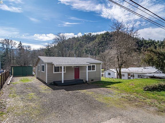 Discover this cozy and recently updated 2-bedroom, 1-bathroom home nestled on a 0.40-acre lot in Riddle, Oregon. Featuring Approximately 704 sq. ft. of living space, this home has been refreshed to offer a comfortable and inviting atmosphere. The spacious yard provides plenty of room for outdoor enjoyment, with a seasonal creek at the back of the property, adding a touch of natural beauty and tranquility. Additional highlights include a long driveway with RV parking, a small covered deck for relaxing and exterior sheds/workshops for extra storage. Inside, you'll find a well-laid-out kitchen, a living area with a pass-through window to the kitchen. Good size rooms with closets and a fresh clean bathroom. Whether you're looking for your next investment or your first home, this property could be perfect for you!