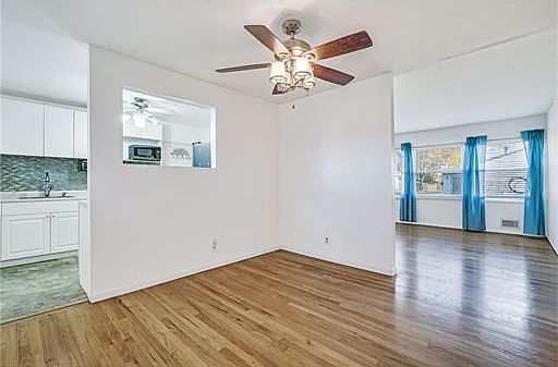 Beautiful 3 bedroom and 1.5 bathroom ranch style home on a corner lot. Hardwood floors throughout the home. Formal living and dining room. Galley style kitchen with a tile back splash, new stainless steel appliances (only 1 year old) and view into dining room. The master bedroom boasts an