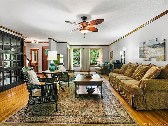 Peaceful Retreat for the Nature Enthusiast! Prime & Rare location on a cul-de-sac lot in Floyds Knobs, ADJACENT TO MT ST FRANCIS & just minutes to I-64 and Louisville. This 4 bedroom, 3 bath traditional home is loaded with classic character. REAL hardwood flooring, a formal dining room, and a sunny breakfast room. There is a buck stove in the spacious living room and a second fireplace is possible in the finished basement with second flue. The large laundry room has a utility sink and walk in pantry. Upstairs you will find 4 nice bedrooms and a huge bonus room. The ensuite master bathroom has updated tile and a new window, as does the full hall bathroom, new vanity too! In the finished basement there is a great room for entertaining or relaxing and a large unfinished storage area. The beautiful backyard with wooded backdrop has gardens, a large wood playground, and peaceful creek at the rear of the lot. Recent updates are neutral paint, new basement carpet and new water softener. Do not miss this opportunity to own this conveniently located, peaceful, Floyds Knobs home!
