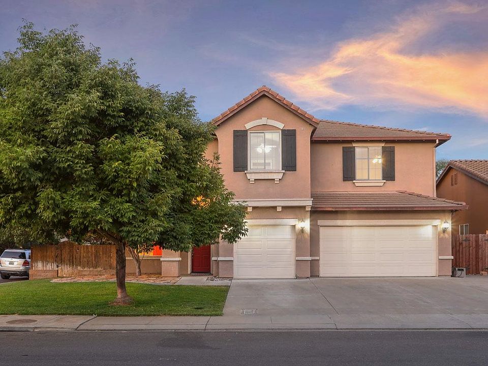 Desirable corner home, 5 bedrooms, 3 bathrooms, 3,132 sq ft home on 7,109 lot size (.25 acre), built in 2003, full bedroom/full bathroom downstairs, 3 car garage with openers, solar heating for pool, gorgeous pool with built-in spa & waterfall, neutral LVP floors & Newer neutral carpet, cathedral ceilings, kitchen with granite slab countertops, stainless appliances, dishwasher, gas stove top, double ovens, built-in microwave, pantry closet, oversized island with vegetable sink, formal dining room, fireplace with mantle, central heat & AC, whole house fan, separate family room & living room, ceiling fans, walk in closet in primary bathroom, dual pane windows, cathedral ceilings, 6 panel doors, 73.7 gallon water heater, upstairs laundry room with cabinets, abundance of storage, electrical outlets set up for outdoor lights with switch in garage, 220 outlet in garage, overhang in backyard, shed, roof clearance to be provided, walking distance to & Enochs High School & Ustach Middle School, close to shopping & parks