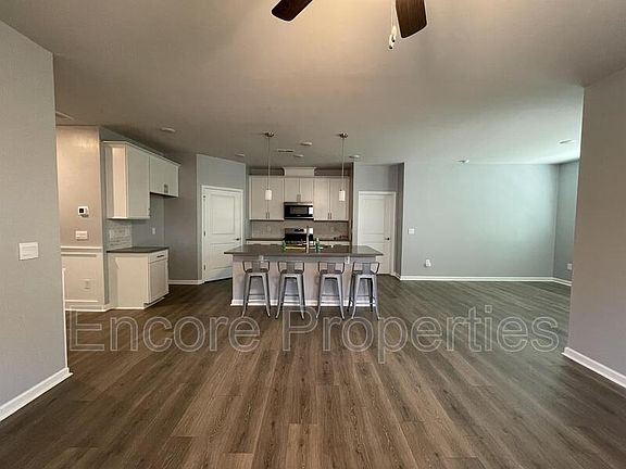 Welcome home to this beautiful open concept ranch style home that you won't want to miss! This home boasts a spacious and inviting great room with plenty of natural light. The upgraded kitchen offers a large grey quartz countertop island, stainless steel appliances and white cabinets. The primary bedroom is generously sized and features a luxurious bath, complete with a walk-in shower. There is also a flex room with a closet, allowing for versatility in its use which can be converted as a third bedroom or home office. The laundry room adds further convenience equipped with a washer and dryer. You can enjoy the beauty of nature from your screened-in porch, backs up to a serene wooded area! Schedule your showing today!