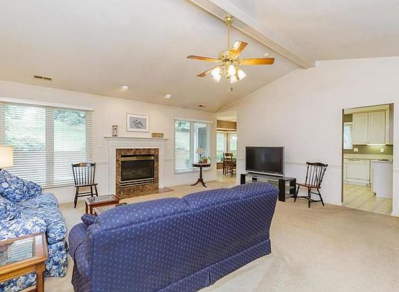 Charming ranch villa in Devilla Trails. Great features include a vaulted great room, cozy gas fireplace, big bay window in breakfast room for maximum sunlight, main floor laundry, master suite bedroom w/ jet tub & separate shower, 2 car garage w/ 3 storage closets, & a darling private patio out back with access off the master as well as off the breakfast room. Great room is huge as well as the bedrooms and closets! Extremely spacious! Great location close to hwys and shopping! 55 year and older community. New roof 1.5 years ago.