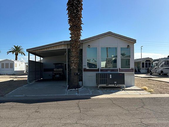 Cozy 1 Bedroom & 1 bath with Covered parking and storage. Has had New A/C, Siding replacement & Plumbing in the last 2 years. The home is located in the very active 55+ community of Mesa Spirit RV Resort. This home is across the street from the community center and the main swimming pools and next to the Dog Park. Come and make this your home yours.