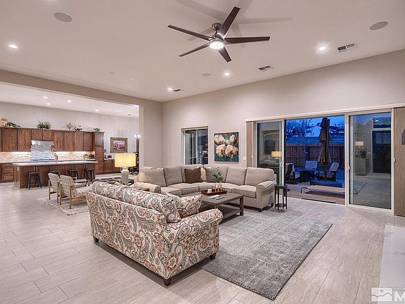 Attention to detail and upgrades abound at 3020 Feathertop Dr in Reno's highly desirable Ridgeline at Caramella Ranch. Enjoy resort-style living in this gorgeous single story where the owners lovingly selected $160,000 of upgraded features that elegantly flow through the popular Baldwin Modern Farmhouse floor plan built by Toll Brothers. Enter the handsome Craftsman front door leading to elevated ceilings & a spacious great room concept. Your gourmet kitchen features top-of-the-line..., KitchenAid appliances with double-oven & stainless gas cooktop, sleek Quartz countertops, upgraded cabinets, generous Bellera sink & inviting breakfast bar. As seen in the Baldwin model home, natural light spills through the rare, oversized window extending to the floor of the dining area. Stylish stone-tile kitchen backsplash compliments the stunning floor-to-ceiling fireplace surround and knotty alder mantel. Too many upgrades for the number of characters allowed. Full list is available upon request. :)