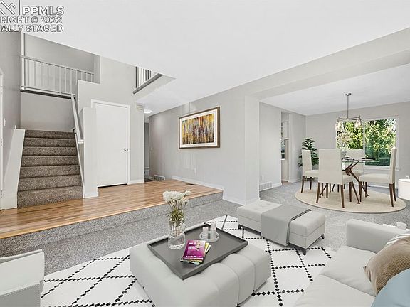 New Price on this beautiful 5 bedroom home located in the desirable Colorado Springs Ranch neighborhood! This home has been upgraded throughout, has a spacious walkout finished basement, 3 car garage, and mountain views! The main floor features a gorgeous kitchen with stainless steel appliances, quartz countertops, and a dining area. You will love the open-concept living, with the main-floor formal dining, vaulted ceilings, and a cozy living room with a fireplace that opens up to a newly updated deck. Upstairs you will find the master bedroom with a 5 piece private bath, walk in closet, and three additional spacious bedrooms. The finished walkout basement area has an additional bedroom, living space, and plenty of storage. This home has been perfectly remodeled and boasts further bonus features: brand new exterior and interior paint, new light fixtures and flooring throughout, modern quartz countertops, remodeled bathrooms, central A/C, and so much more! This house has it all, and ideally located near parks, trails, shopping! Don’t miss the opportunity to make this wonderful home yours! (Some photos have been virtually staged)