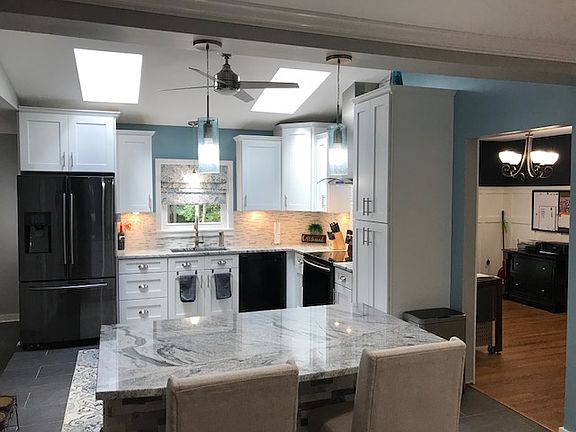 Immaculately and fully renovated 4 bedroom 3 full bath rancher on 1.43 acres with 2-car garage and finished basement. This home offers an open floor concept with...1st floor family room w/ pellet stove and door leading out to 50' x 14' cumaru wood deck which was completed in 2021. Oversized kitchen w/ granite countertops, black stainless steel appliances, seated island, and skylights. Living room w/ crown molding and recessed lighting. Dining room w/ board and batten wall. Hallway bath w/ porcelain tile tub surround and porcelain tile flooring. Master bedroom w/ brand new sliding door leading to deck and brand new hardwood floors. Master bath w/ tile shower surround and flooring, frameless glass shower doors, double vanity. Lower level family room has new recessed lighting, new laminate flooring, level walk-out, spacious bedroom, huge storage and laundry room. 1yr old HVAC system (gas furnace and central air) New submersible well pump 2 yr old water heater. Water conditioner system. This home has a brand new roof and brand new siding, gutters, facia, and soffet.
