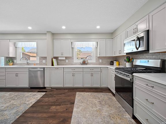 This Shordon Estates home is truly a one of a kind! Almost every room in this home has been renovated with exquisite taste and colors. The kitchen is a chefs dream with new everything being upgraded in 2020 including all appliances. The Corian countertop and beautiful cabinetry are accented by a gorgeous backsplash and luxury vinyl plank flooring. The kitchen has been completely opened up to the breakfast nook and family room. All rooms have windows/doors looking out on the backyard inground pool and landscaping. The family room has a cozy gas log fireplace to warm those winter nights. The main floor also boasts a front living room/dining room and a half bath with laundry. The upper level has 4 bedrooms. Three bedrooms share a large full bathroom with dual vanity sinks and a tiled shower. The remodeling of the master ensuite is second to none. You will love the large walk-in tiled shower, dual vanity sinks and two large closets. The backyard entertaining area will make your home the place to be! The pool slopes to 8' and includes a diving board, robotic cleaner, heater, and winter safety cover. There are automatic lights in the front and back. The landscaping was recently upgraded with a stamped concrete border. Other upgrades are: In 2019 all windows were replaced, new pool liner In 2020 kitchen, bathroom, family room completely remodeled, new gas log for fireplace including a cleaning and inspection, new kitchen appliances. In 2021 HVAC replaced, complete tear off of roof, upstairs bathroom remodel, gutter guards added, In 2022 New washer, dryer, water heater, Pool heater It's evident that the new buyer can move in, relax and not worry about any big ticket items for years. In the world of real estate this one is a unicorn!