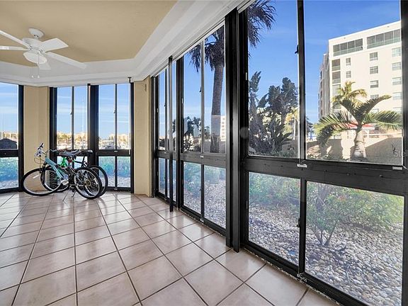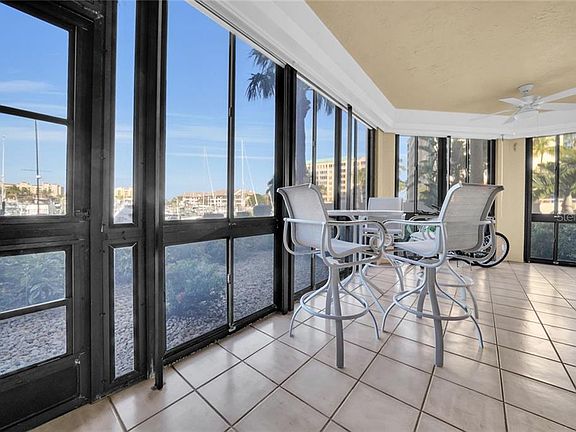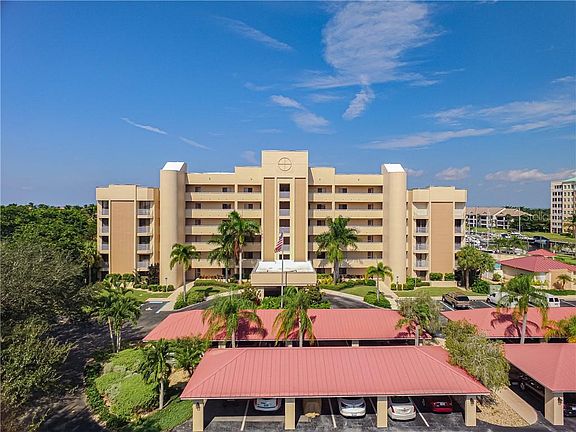 Imagine walking out the back door to your boat, or coming in with an armful of groceries without going up the stairs or elevator. This end unit overlooking Burnt Store Marina's north basin is a fantastic opportunity to live in a condo with 3 full bedrooms, 2 bathrooms, a sweeping wrap-around lanai and quick access to your boat or car under a dedicated carport. Best of all, the lanai can be completely protected by motorized hurricane shutters. The heated community pool is just steps away from this side of the building and it gets warm sunshine all day long. These end units are rarely available and this one features tile flooring throughout the main living area and lanai and wood laminate in all bedrooms. Being the end, there are additional windows along the side providing an abundance of natural light. Owner's suite and guest bedrooms are spaced apart to provide privacy for everyone. Full inside laundry. Large master ensuite bath and sliding doors from the master bedroom to the lanai make it easy to enjoy breakfast in the morning and then come back for glorious sunsets at night from the western exposure. Bring your design ideas and make your own updates in the kitchen and bathrooms and you'll have a wonderful home on the water - without maintenance! Be sure to watch the 3D tour!