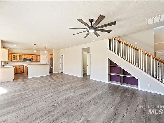 This stunning 5-bed, 2.5-bath home is packed with upgrades and designed for comfort! The heart of the home is the kitchen, featuring ample cabinet/counter space, two islands, a pantry, and an open layout that flows into the great room, where a cozy fireplace invites you to unwind. Upgraded in 2022, the home boasts new carpet & LVP throughout. Upstairs, you'll find 4 generously-sized bedrooms, a desk nook, and a full bath. Outside, the charm continues with a spacious covered front porch perfect for enjoying coffee, a huge 3-car garage with brand-new insulated doors (2024), and a handy storage shed. The list of updates is endless: new toilets (2022), modern ceiling fans (2023), stylish LED panel lighting in the master closet (2023), and professionally trimmed trees (2023) are just a few of the recent enhancements that make this home shine.