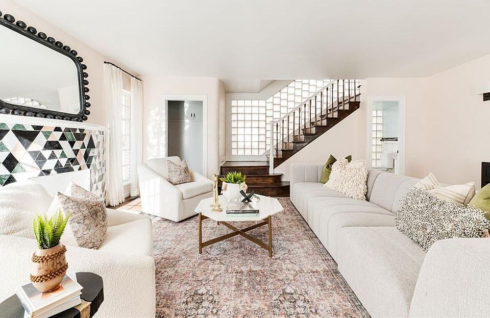 On the Boulevard in Cleveland- As you approach the elegant facade, adorned with geometric motifs and sleek lines, you are instantly captivated by the timeless beauty that defines Art Deco architecture. Just past the pink entry you'll find the formal living room with a tiled fireplace and a glass block wall offering an inviting ambiance for gatherings. A Galley-style kitchen with Quartz countertops, subway tile, and high end rose gold hardware sits adjacent from the informal living room where the relaxation really happens. A downstairs primary with en-suite closet and bath is complete with french doors that lead you to the whimsical patio/backyard where you'll enjoy morning coffee or host alfresco gatherings. Upstairs, additional bedrooms and well-appointed bathrooms provide ample space for family members or guests, each adorned with unique period accents. Schedule your private viewing today and experience the enchantment of this captivating residence firsthand.