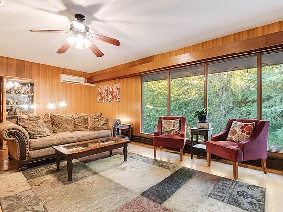 A true mid century modern with additional living quarters, perfect for multi-gen living or Adult Care Home. Mahogany cabinetry, high end appliances and quartz counters. Floor to ceiling windows to enjoy the beautiful views of your private back yard. Full kitchen, family room, bedrooms and storage on the lower level. Outdoor living on the balcony deck, expansive patio or relax by the firepit while listening to the creek flow through the property. This well maintained property will not disappoint.