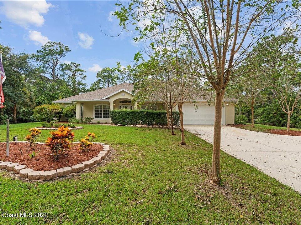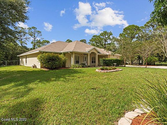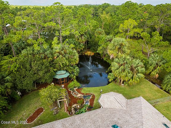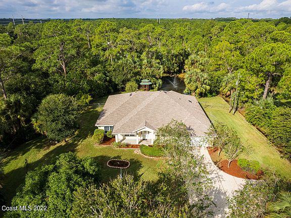 Meticulously maintained estate sitting on over an acre in beautiful West Melbourne, Florida. Enjoy your own outdoor oasis in this professionally landscaped yard. Hangout in the gazebo and watch the fish in the pond or relax on the back porch watching the wildlife. Recent updates and features to the home include: brand new roof (2022), AC system (2018), septic system pumped (2018), exterior painted and sealed (2018), irrigation system installed (2016), professionally inspected (2022), as well as new hurricane shutters and storage shed. Great location in close proximity to highway/great schools/business and just a short drive to Orlando and the beach.