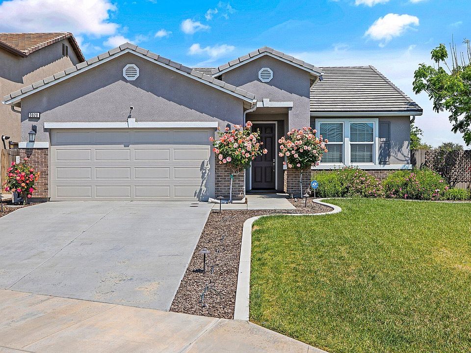 Welcome to this inviting 3-bedroom, 2-bath home nestled in SE Tulare, within the Alpine Vista & Mission Oak school zones. Built in 2017 with over 1,400 sq ft, this residence features a fluid layout with a dining area and a well-appointed kitchen boasting granite countertops and generous storage—perfect for gatherings. The adjacent living room is spacious, ideal for relaxation. Down a quiet hallway, discover the sizable master suite with a spotless en-suite bath and large walk-in closet, alongside two additional bedrooms and a full guest bathroom. Out back, enjoy a landscaped retreat with ample space and RV parking potential. This home is a harmonious blend of style, function, and prime location.