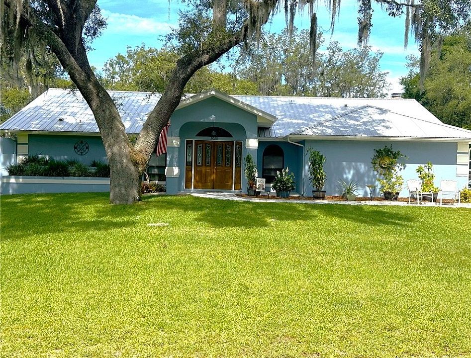 This open bright spacious 3 bedrooms 2 bath split floor plan home with a screened-in saltwater pool & roof covered patio deck is on a 1/2-acre lot with a dock on a canal leading to Davis Lake & adjoining lakes. The covered deck is great to be outside but still stay out of the sun or rain & perfect for entertaining. A wonderful entryway opens to a large formal living room which feeds into the spacious 22' long family room with fireplace. Both the living room and family room have vaulted ceilings for a very airy feel. The large kitchen has brand new quartz countertop with new gorgeous white glass back splash, a service window with countertop bar, stainless steel fridge, stove, and dishwasher plus lots of beautiful wooden cabinets. There is a nice breakfast area in the kitchen overlooking the pool and back yard. The master bedroom, dining area and kitchen breakfast area all have sliding glass doors, as well as the middle bath with its swing door, which open to pool area and back yard. About 30% of the huge backyard is enclosed around the pool area with vinyl privacy fencing to keep kids or pets contained. The rest of the backyard with its 100 foot frontage on the canal is open for all kinds of fun activities or just relaxing under the oak trees. The big master bedroom with a view of the pool area has a ceiling fan, his and her walk-in closets and a completely remodeled master bath with utility closet. Both other bedrooms are big with large closets. One bedroom is currently being used as a large work at home office. The middle bath was also recently remodeled. All the bedrooms and family room have ceiling fans. The sizeable interior laundry room has plenty of storage space. In addition to the large 2 car garage, there is a 2 year old large 8x12 storage shed at the end of a lengthy wide driveway with plenty of parking space for multiple cars, motor home, boat, etc. The home is wired with a transfer switch box to easily connect a generator to the fridge and mulitple circuits in case of a power outage.