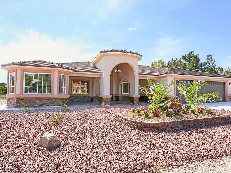 CUSTOM NEW HOME -On the golf course. 4 Bedroom 2 bath Approx. 2420 sqft. on almost a half acre lot, Home features, Stone exterior, Stamped concrete, Desert landscaping, Open floor plan, Two tone paint, Granite counters, Slow close cabinets and drawers, Large master bedroom and master bath with dual head custom tile shower, Walk-in closet, And a view of the greens from your patio, 3 car garage with utility sink. NO HOA.