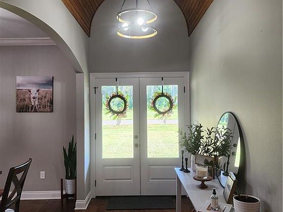 This beautifully designed residence offers 3 spacious bedrooms and 2.5 bathrooms for comfortable family living. Upon entry, you'll be welcomed by gleaming hardwood floors that flow seamlessly throughout the main areas, complemented by elegant porcelain tiles in the bathrooms and laundry. The living room, with its striking stained wooden cathedral ceiling, exudes warmth and charm, further enhanced by a cozy wood-burning fireplace. The foyer makes a grand statement with its stunning stained wood barrel ceiling, setting the tone for the home's exceptional craftsmanship. The kitchen is a chef's dream, featuring granite countertops, a walk-in pantry, and a custom-tiled shower. The open layout ensures a seamless connection between the kitchen, dining, and large living room for entertaining. For those with hobbies or storage needs, the property includes a versatile 24x24 workshop with 12x24 overhangs for storing a boat or other equipment. A recreation room adds to the home's functionality, providing extra space for relaxation or play. Practical amenities include a two-car carport and the convenience of being just 10 minutes from Pineville. Located within the Buckeye school district, this home is for families seeking quality education and a peaceful lifestyle.