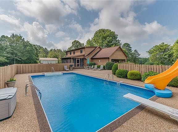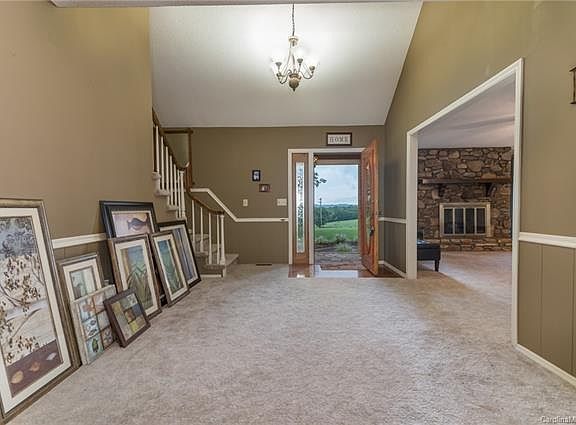 Beautiful Well Built, One Owner Home on 19.57 Private Acres with a Mountain View. Home offers wood floors in the kitchen and dining area, rock fireplace in the living room, vaulted ceilings in the foyer area, large master bedroom with walk in closet, master bathroom with double vanity and makeup area, two bedrooms with walk in closets and a large bathroom with double vanity upstairs, two floored attic storage areas, full basement with wood burning fireplace and walk out doors, large screened in porch overlooking the beautiful in ground pool and the private acreage. There is also a 30x40 two garage door workshop with power. The land has road frontage along two roads.