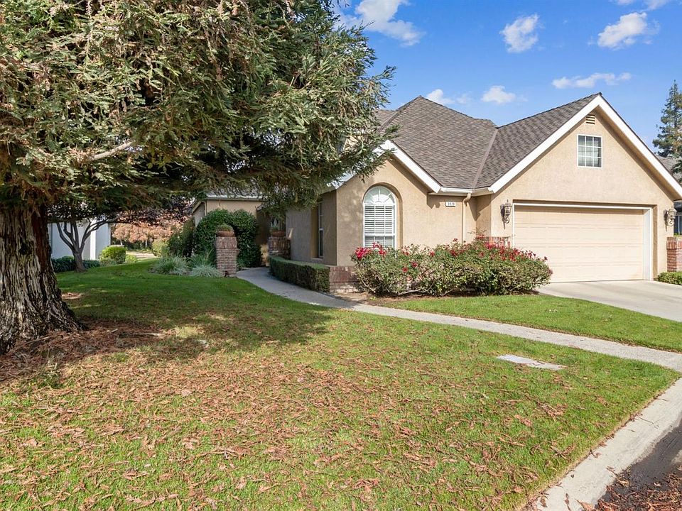 Stonebridge gated community with a serene view of living on the water. Peaceful and charming with so much room to relax and enjoy. Plenty of room to entertain in the Formal Dining and Living Room or the Kitchen that is open to the Family Room. The Kitchen has a 6 burner gas Dacor stove and oven, along with other amenities for the chef. Everything is downstairs, on one level, except one bedroom and bath that is up. Enjoy the Master with French doors opening to the back and views of the water with updated features in the bath to include a large shower. Granite countertops, plantation shutters, built in storage in the garage. Many HOA amenities with 3 pools/spas, clubhouse, tennis courts, gated 24hr guard, walking or riding your bike. Conveniently located Northwest close to shopping, Fig Garden, River Park, and freeways. Original owner in this pride of ownership home. Something not to miss!
