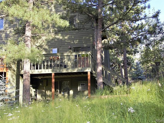 This gorgeously updated duplex-style home is perfectly situated near everyday amenities and only 5 minutes from hiking, biking, snowshoeing and horseback riding. The Alpine-inspired garden with sweeping areas of easy-care trees, shrubs and perennials welcomes you. Low-voltage pathway lighting will usher you to the front door in the evenings. Step inside to find solid oak hardwood flooring throughout the main floor, and a cozy wood burning fireplace in the living room. The cook's kitchen with eat-in dining is light and bright, has ample cabinets and display space, slab granite, tumbled travertine backsplash, plus a stainless steel appliance package including convection/micro. From the kitchen sink, admire the landscape of whispering pines with the mountains as your backdrop. Laundry area on the main floor has 42" cabinets for more storage opportunity. Upstairs from your master bedroom bed pillow, enjoy the sun rising through the pines, a beautiful way to begin every day. The spacious master bedroom offers his and hers closets, a ceiling fan, and a balcony... perfect for a chaise lounge. The spacious second bedroom boasts ample closet space with built-in shelving, a ceiling fan, and pine tree views. The stunning upstairs bathroom features a natural travertine stone surround with and a Swanstone pan walk-in shower. This bathroom boasts a generous slab granite countertop, Kohler fixtures, and brushed nickel accessories. On the first level with garden and mountain views, the third bedroom offers solid oak hardwood flooring and a custom barn door with additional storage opportunity behind the bedroom closet. Full bath features solid oak hardwood flooring, slab granite countertop, Kohler fixtures, including a cast iron Kohler tub, brushed nickel accessories, and an optional timed ambient heater which provides instant heat for a spa-like experience. Enjoy the sun setting from your spacious back deck with low-maintenance Trex decking or relax in the lovely garden area below.