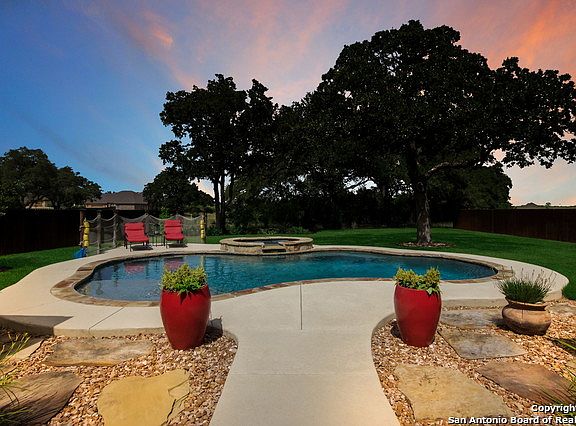 Gorgeous single story home, 4 bed/4 baths/3 car garage, 3,598 sqft in Fair Oaks Ranch. SOLAR PANELS! Big savings on electric bill year round. Open concept living w/elegant fireplace, high ceilings, hardwood & porcelain tile floors. Gourmet kitchen opening into the living room. Elegant master bedroom w/outside access. Master bath w/garden tub, walk-in shower. Great room opening into outdoor oasis w/fireplace & grill for entertaining. Custom designed pool w/hot tub w/fenced backyard. Comal ISD. WELCOME HOME!