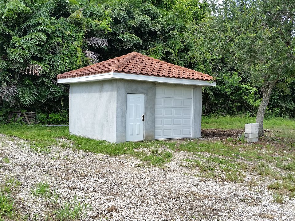 2.5 Acres; beautiful lot to build your home; very nice 250 square foot concrete block and stucco garage building with concrete roofing tiles, 8x8 garage door, and additional walk-in door; zoned agricultural/buildable for single family home; access is via PAVED roads; mostly cleared; partially fenced; plenty of room to have an orchard or to start your agricultural business; realtors, bring me your buyers; owner financing available. Call or text.