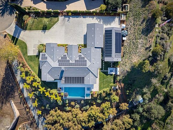 Welcome to a realm of luxury where savings meet sophistication. Nestled within this exceptional gated estate is a gourmet kitchen fit for royalty, equipped with a Wolf 6-burner stove, (2) Wolf ovens, and a Subzero refrigerator – a culinary symphony that would make any chef proud. The rustic charm of wood beams adds a touch of elegance, setting the stage for a lifestyle that transcends the ordinary. Beyond aesthetics, revel in the financial prowess of zero utility bills – a testament to the property's off-grid mastery. With fully paid-for solar panels and well water the current owner saves over $30,000 a year in utilities bills. Effortlessly control the ambiance with Lutron lighting, managing it from your phone throughout the entire house. Stay seamlessly connected with Wi-Fi repeaters strategically placed in the main house, guesthouse, and backyard. Outdoor bliss awaits with (2) 220v electric space heaters on the back patio, ensuring warmth on chilly evenings. Both homes proudly stand off the grid, powered by well water, solar panels, and Tesla batteries. The main house's solar system, with two Tesla batteries, exceeds electrical needs by 150%, while the 1 bedroom, 1 bathroom guest house is equally self-sufficient. A newly drilled well, flowing at an impressive 100 gallons per minute, quenches the property's thirst for sustainability. Safety is paramount with a pre-wired alarm system and security cameras. Nature's bounty surrounds with 90 avocado trees, 40 orange trees, and a dozen other fruit trees. Landscaping, orchestrated by timers, is a symphony of colors, while the saltwater pool beckons relaxation, equipped with Pentair pool gear and an opulent outdoor shower. Solar panels adorn the roof, creating a self-sufficient haven. Grill enthusiasts will delight in the Wolf barbecue, completing the outdoor culinary ensemble. This property isn't just a home; it's a testament to a lifestyle where luxury meets savings, where every detail is designed for a sustainable and opulent living experience. Welcome to your private oasis, where the extraordinary is an everyday occurrence.