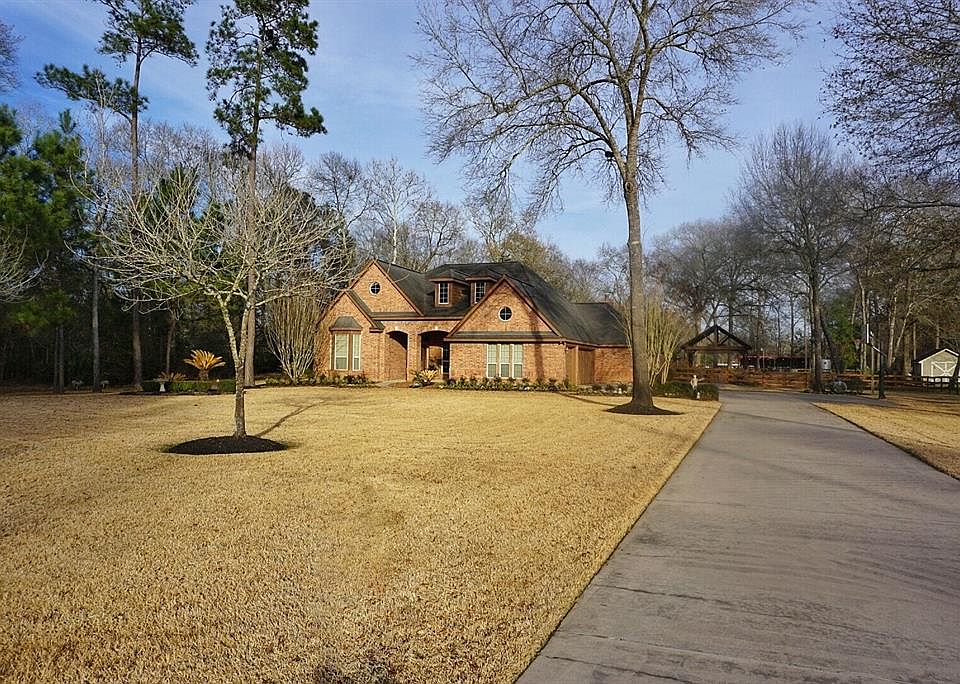 Beautiful home on almost 2 acres.Lots of natural light,including a sky light in the kitchen ceiling. Large kitchen open to the family room, where you have a great view of the pool. Several mature trees, giving off just the the right amount of shade to enjoy your backyard retreat.Soak up some sun on the pool's tanning ledge or enjoy the serenity of the hot tub & salt water heated pool.It doesn't stop there,entertain friends under the covered pavilion, w/electricity. 3 outdoor work spaces, pool shed,tool shed, & concreted barn.The mst bedroom down offers bay windows, lrg walk in closet, & crown molding.All bedrooms down. Mother in law suite also has it's own full bath.Only huge gameroom/media room up! Great amount of storage space with a built in desk & shelves between the bedrooms.The study could also be used as a 5th bedroom. Automatic sprinkler hooked up to private water well. Subdivision has a beach area w/boat ramp,fishing piers,& park/picnic areas for residents only