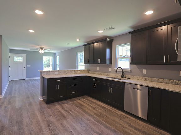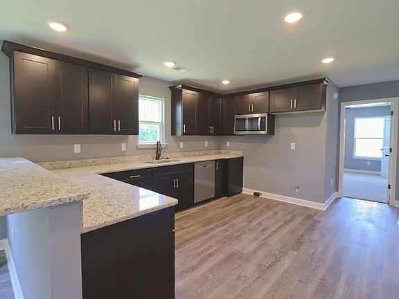 All one level new construction home on a slab foundation on 1.14 acres and close to the lake! LVP flooring throughout except carpet in the guest bedrooms, granite countertops, SS appliances, and high speed internet available! Double vanities in the master with two separate closets! Come check it out!