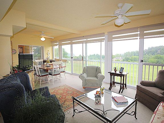 Upgraded Lakeview Condo. Second floor flat, includes 2BR,2.5 Ba, dining area, Bright and Light Kitchen,Elegant great room with Fireplace, huge sun room with HVAC service & sliding glass doors to create 4 season living & big views.A terrific bonus room( media, office, sitting, exercise, etc.). Over 2000 sq. ft. heated, beautiful year round mountain & lake views, covered parking, storage unit & much more.