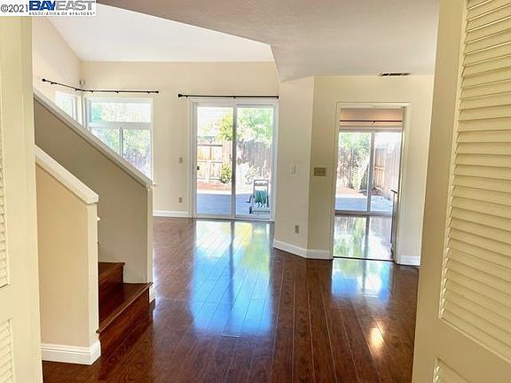 Quiet location in Central Fremont near Quarry Lake trail. Northeast facing front door. Highly upgraded home. Gleaming wood floor. One bedroom and full bath down. Two master bedrooms up. Open floor plan. Updated kitchen with granite counter, ample white cabinets, new gas range and microwave and Samsung s/s fridge with icemaker. Upgraded bathrooms with new tile walls, new shower glass door, new floors. Whole house attic fan. Attached 2 car garage. Community pool. Low maintenance front yard and concrete and paver backyard. Close to BART and shopping.