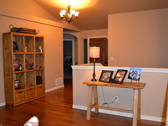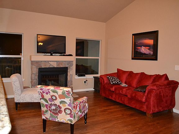 Large open floor plan with mountain views. Gorgeous oak floors throughout main level. Living room with vaulted ceilings & dual sided fireplace shared with deck. Eat-in kitchen with granite counters, pantry & stainless steel appliances. Composite deck with mountain views, private fenced backyard with sprinkler system. Master bedroom has vaulted ceilings, attached 5 piece bath, and a large walk-in closet. Basement provides spacious rec room with walkout to backyard. Other special features include A/C, oversized garage, cul de sac, D20 schools. Close to everything! Owner pays for trash. Tenant responsible for other utilities.