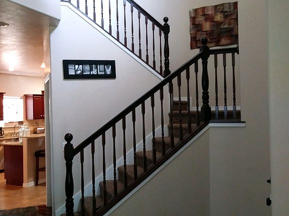 Let this dream home become your reality. This beautiful 4 bedroom, 3 1/2 bathroom home boasts granite countertops, gas fireplace, hardwood floors, a bathroom off the kitchen just inside the double car garage with built in shelving and 2 air conditioning units. Upstairs has 3 bedrooms, 2 full bathrooms and a private office or sitting room. The master bedroom has oversized his and her closets just off the oversized master bathroom with separate shower and soaker tub. Downstairs has a bedroom, bathroom and theater seating for 7 to comfortably watch all of your favorite movies or sports games. Never see your TV Cables (they are tucked in the walls behind the TVs). Outside you will find a maintenance free front yard and a back yard with endless potential along with covered front porch and a deck out back. This home is immaculate and move in ready!