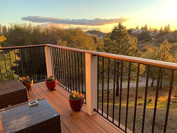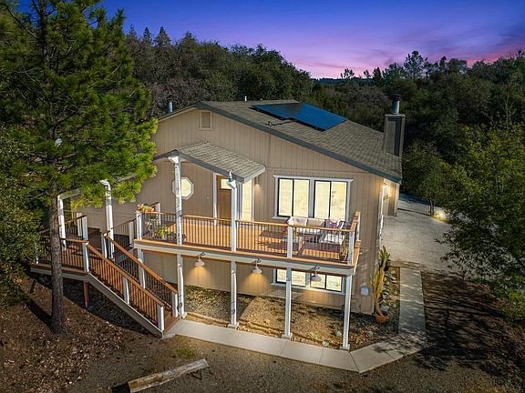 Modern Industrial meets Country, solar home, potential horse property. Deluxe kitchen, Master, and second bath remodel, concrete/epoxy custom counters, travertine, stainless appliances, glass! Oak hardwood floors and newer carpeting. All new light fixtures & ceiling fans. Newer interior and exterior paint. All day to day living on the main level. Wood burning stove in the master. Fenced-in deer-proof garden. 4 Decks (all new, three composite, one redwood). Very private & quiet setting on one of the best streets, and one of the best views in ALT! Great for entertaining. Downstairs can be used as large 4th bedroom, office, gym, or recreation room. Auburn Lake Trails offers a 9 hole golf course, miles of trails, community pools, pickleball, tennis, fishing, RV storage, boarding facilities with a great clubhouse.
