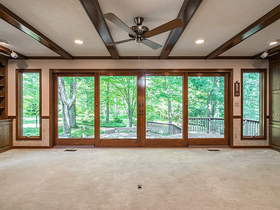 Welcome home!! Lots of space and a large beautiful 1.5 acre wooded lot! Roof-4 years old A/c-3 years old, Furnace from 2007, All appliances stay, Two living areas on the main floor with double sliding doors which open to look upon a park-like back yard with rock walking pathways. First floor master with 2 bedrooms and an additional room with closet upstairs. There is also a full finished basement with utility room and an area with a wet bar which is also ready for a wood burning stove. With an exterior building for two additional garage parking spots, and a room upstairs with a full bathroom as well, this home has it all!